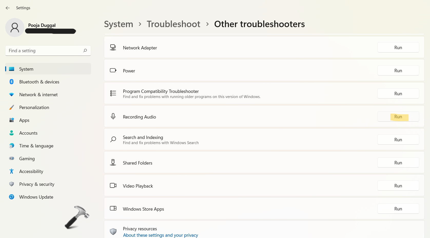 1.OuvrirParamètreset allez auSystèmelanguette. Ensuite, cliquez surDépanner.