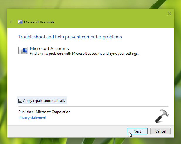 Correctif 2 : Exécutez l’utilitaire de résolution des problèmes des comptes Microsoft