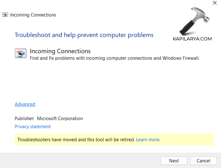 msdt.exe /id NetworkDiagnosticsInbound