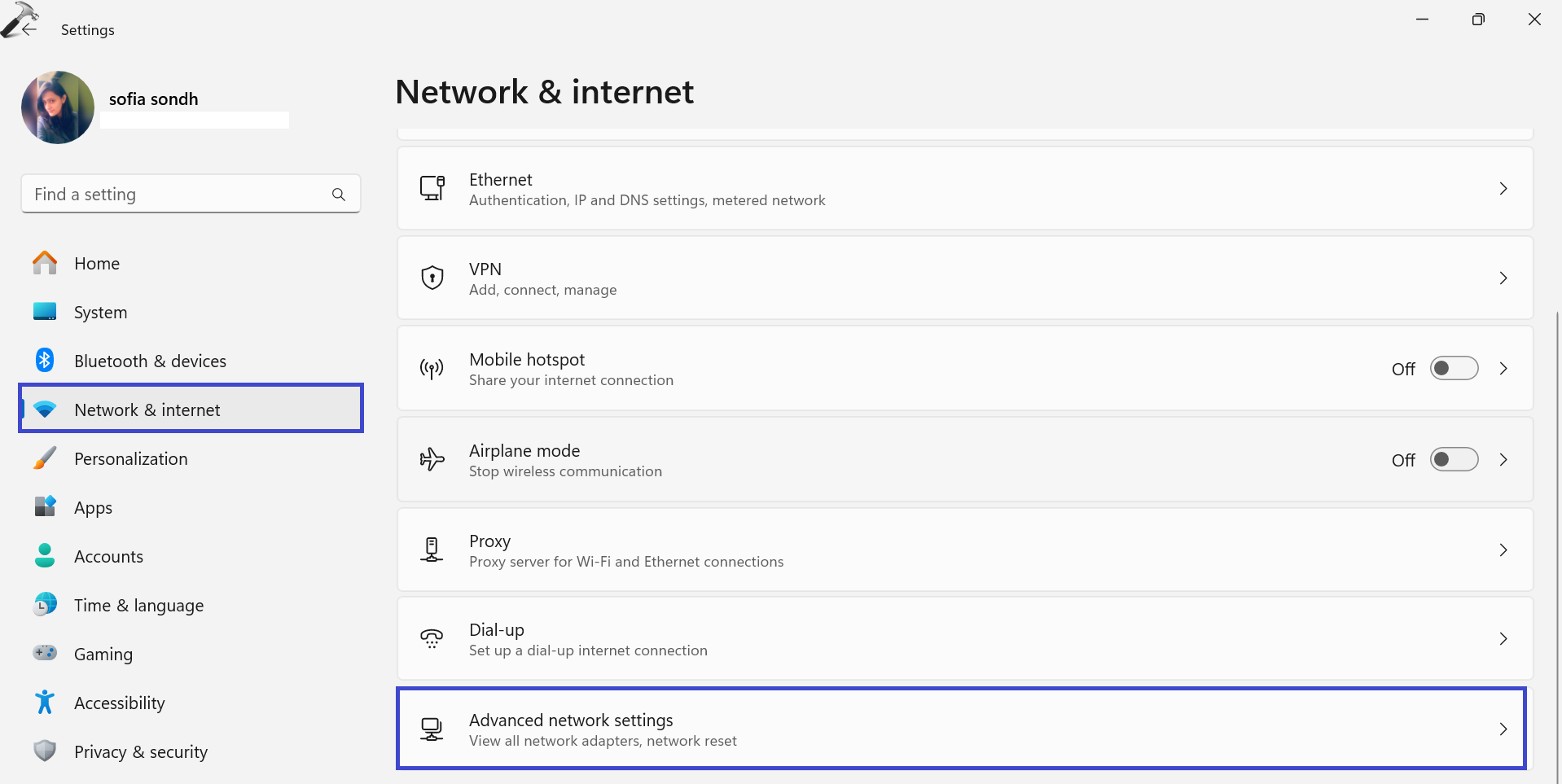 1. Ouvrez l'application Paramètres. Naviguer vers "Réseau et Internet"Et cliquez"Paramètres réseau avancés«.
