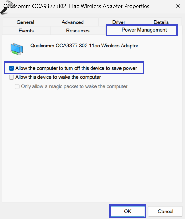 Correction 5: Modifier les paramètres d'alimentation de l'adaptateur réseau