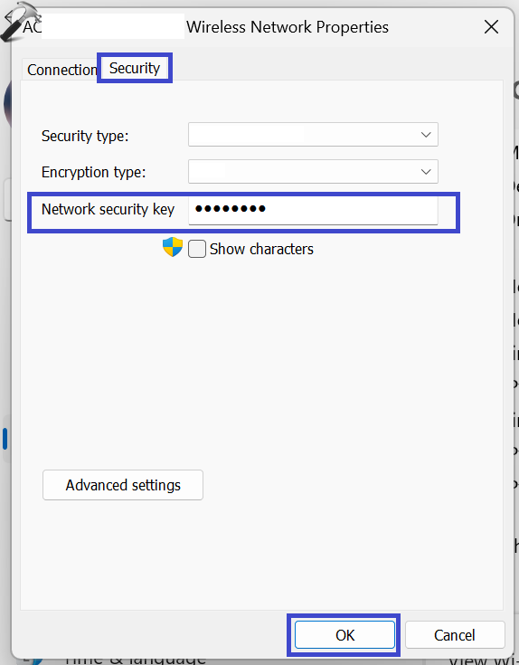 Mettre à jour le mot de passe wifi ou leClé de sécurité réseau.Cliquez sur OK.