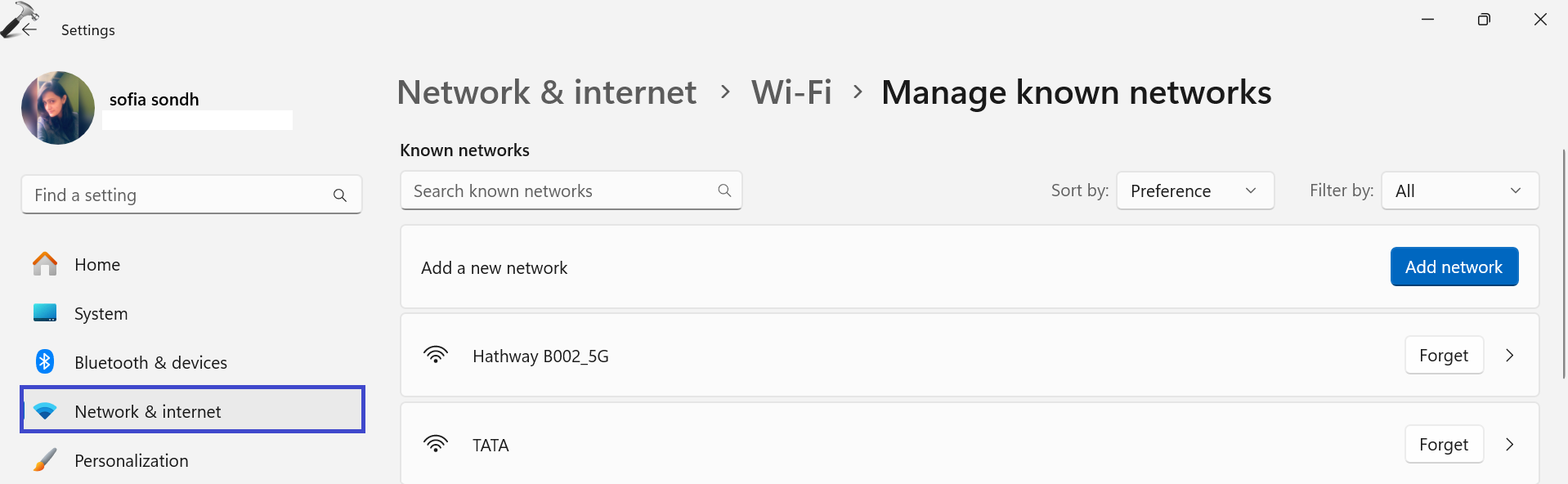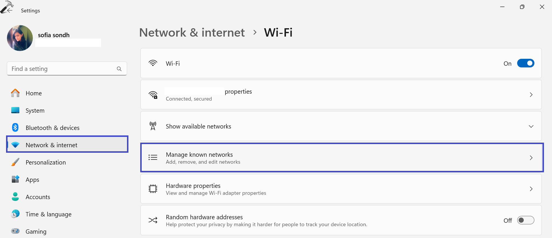 2. Sur le panneau de droite, sélectionnez le «Gérer les réseaux connus" option.