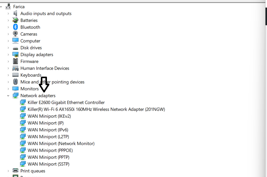 1. Accédez au menu Démarrer > Gestionnaire de périphériques > Adaptateurs réseau.