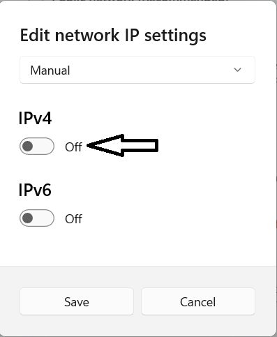 4. DéfinirAutomatique (DHCP)àManuelet basculerIPv4. CliquezSauvegarder.