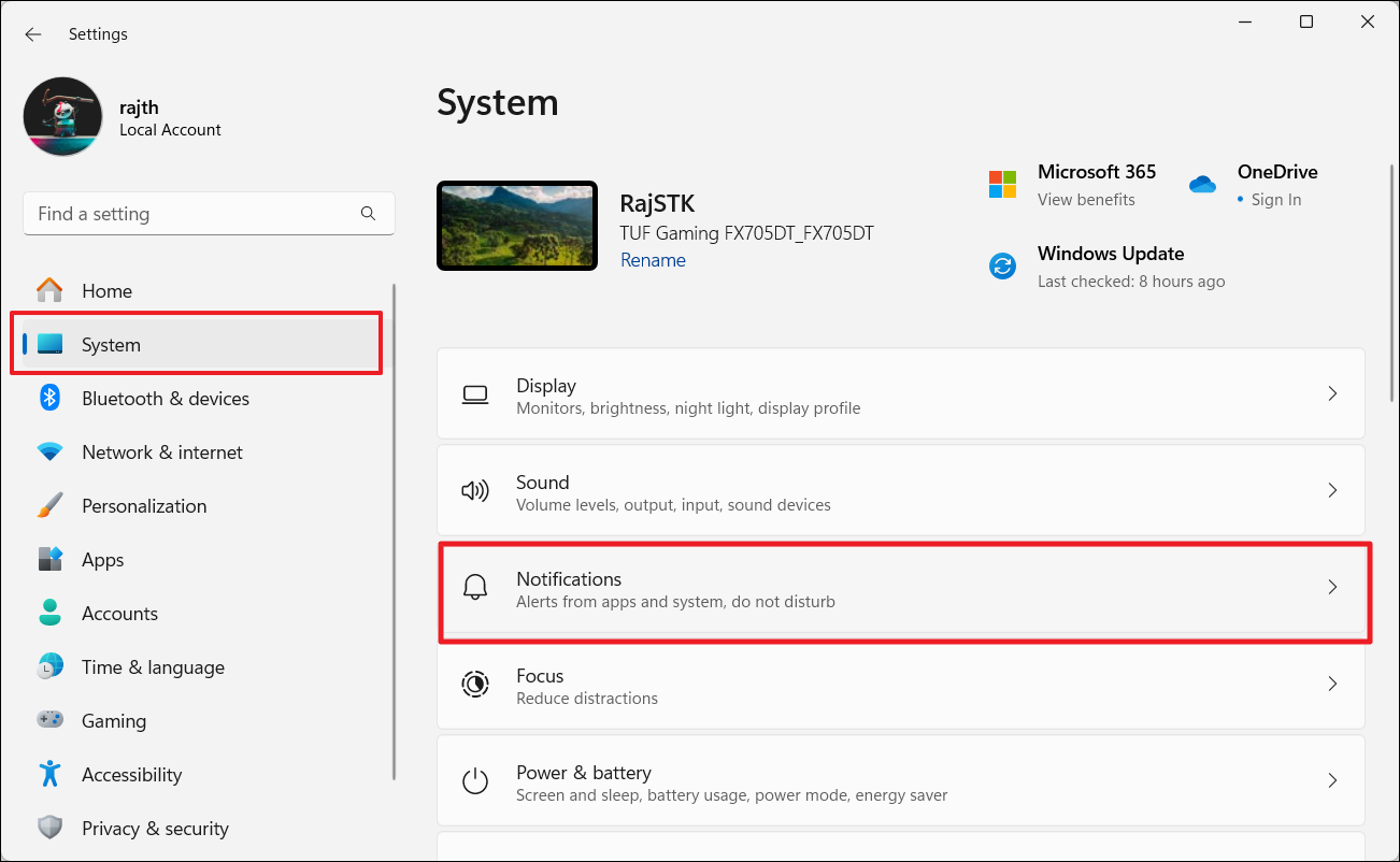 1. Dans les paramètres Windows, accédez àSystème>Notifications.