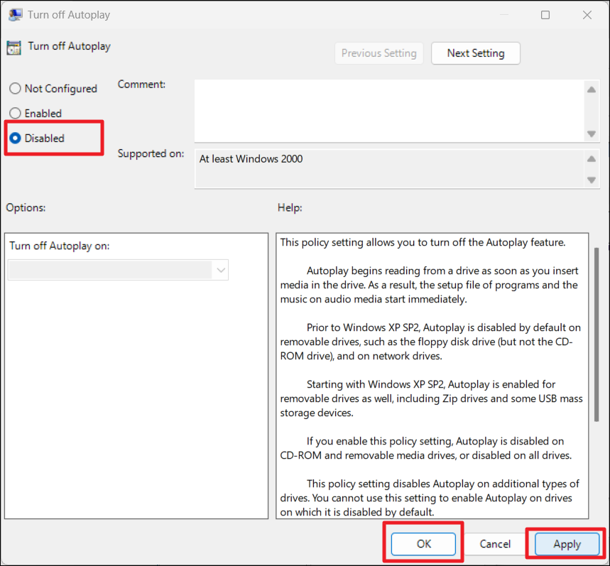 3. Double-cliquez sur le «Désactivez la lecture automatique »politique pour l’ouvrir.