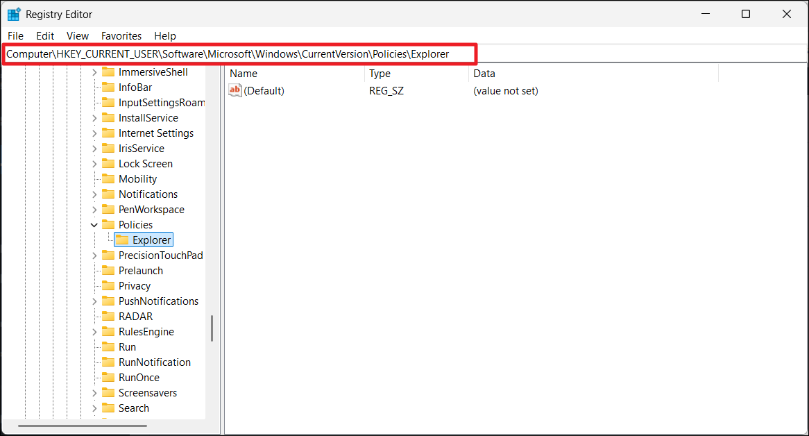 HKEY_CURRENT_USERSoftwareMicrosoftWindowsCurrentVersionPoliciesExplorer