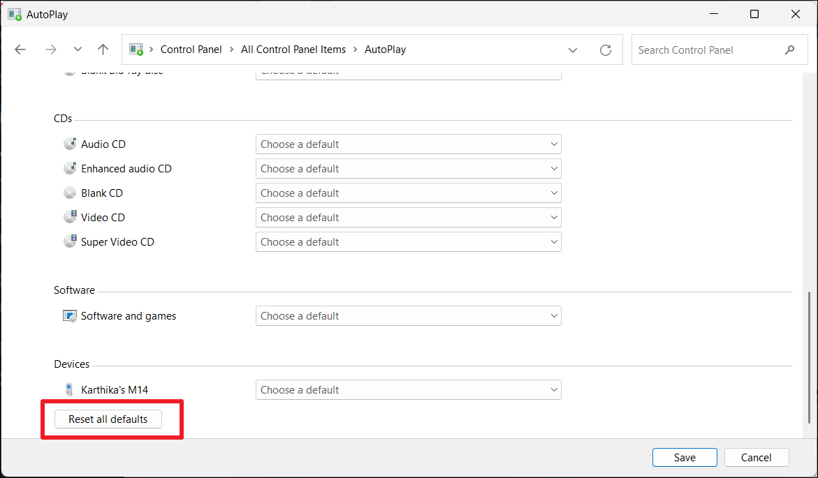 Méthode 8 : réinitialiser les paramètres de lecture automatique