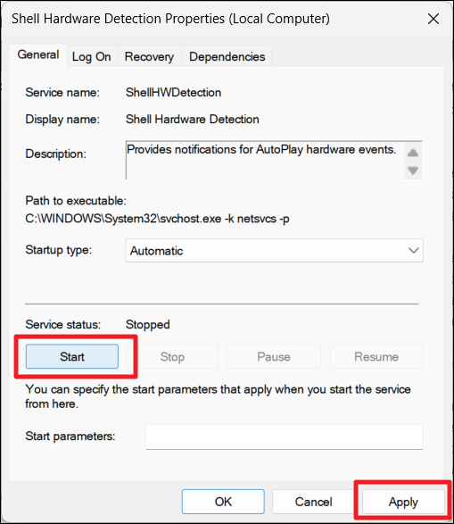 Méthode 4 : redémarrer le service Shell Hardware Detection