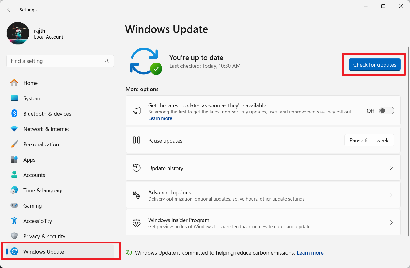 3. Maintenant, cliquez sur «Vérifier les mises à jour» pour vérifier les mises à jour disponibles.