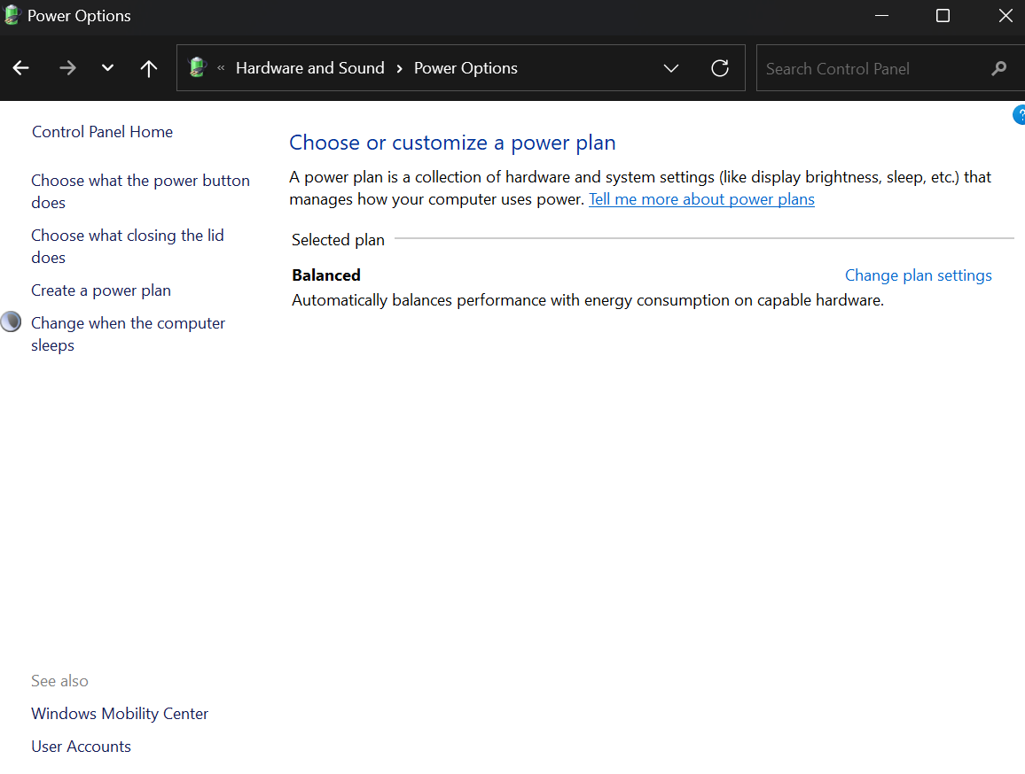 - Cliquez surChoisissez ce que font les boutons d'alimentationoption dans le panneau de gauche.