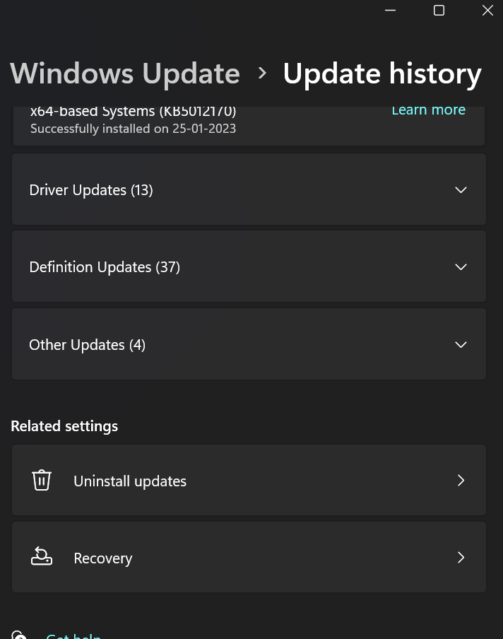 - Cliquez surMise à jour Windowsdans le panneau de gauche et accédez àHistorique des mises à jour.