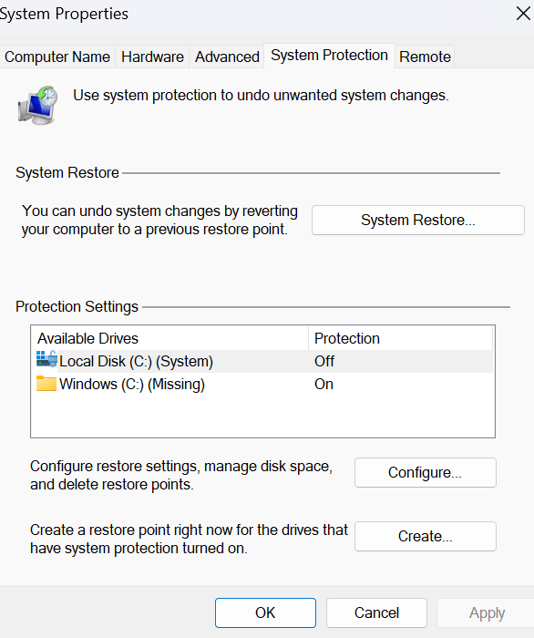 - Cliquez maintenant surProtection du systèmede laLiens connexessection.