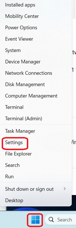 1. Faites un clic droit sur l'icône Windows et cliquez surParamètres.