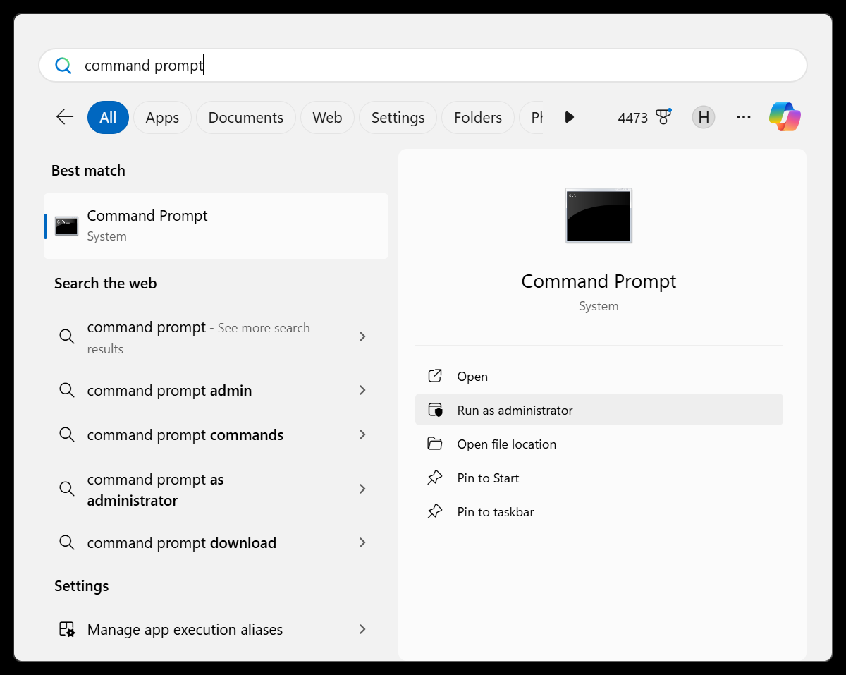 1. Recherchez dans Windowscmdet exécutez-le en tant qu'administrateur.