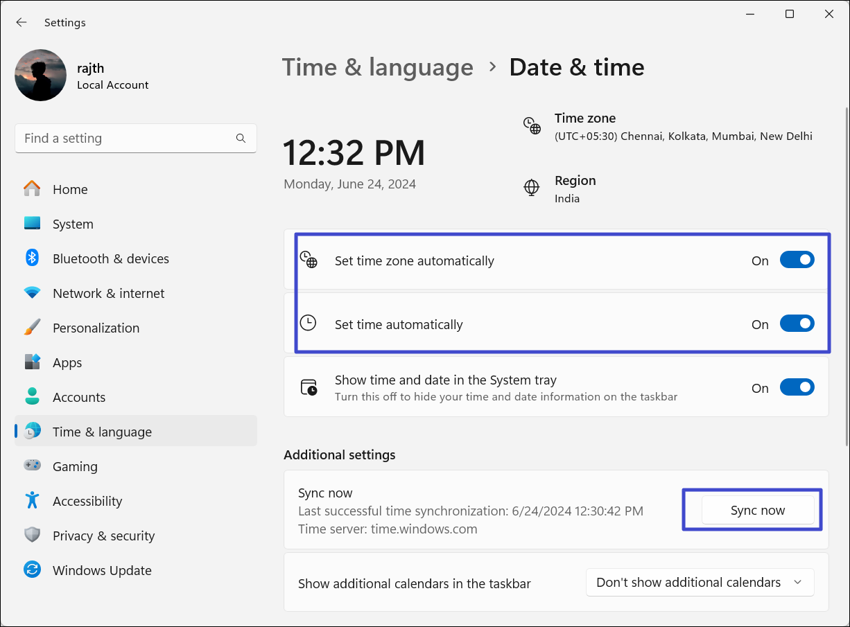 3. Sous Paramètres de date et d'heure, assurez-vous que les options suivantes sont activées :