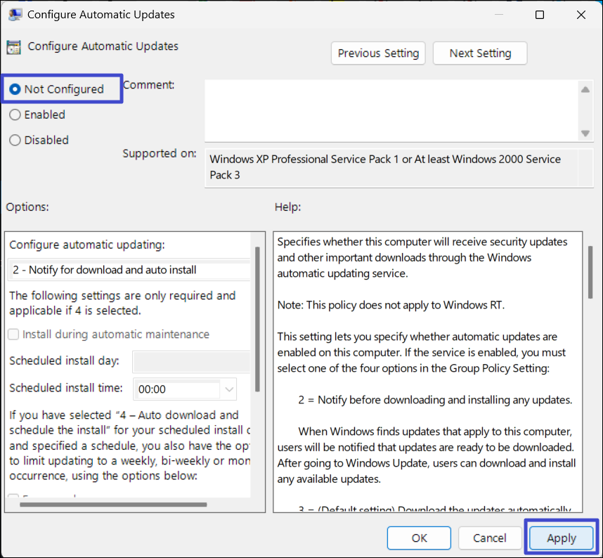4. Maintenant, sélectionnez «Non configuré »et cliquez sur "Appliquer". Alors, "D'ACCORD“.
