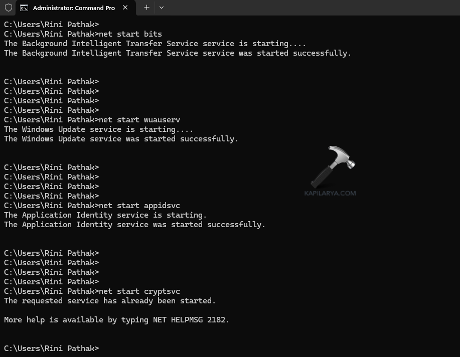 Étape 2-Maintenant, copiez et collez les invites ci-dessous une par une et appuyez sur Entrée-