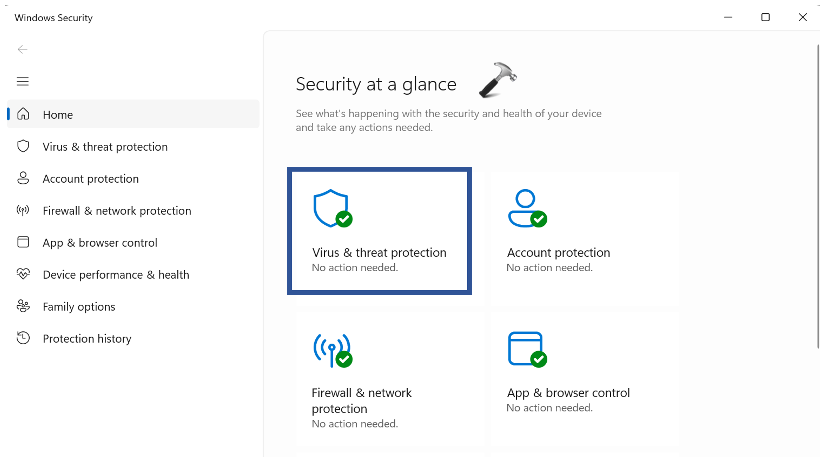 2. Maintenant, sélectionnez le «Protection contre les virus et les menaces" option.
