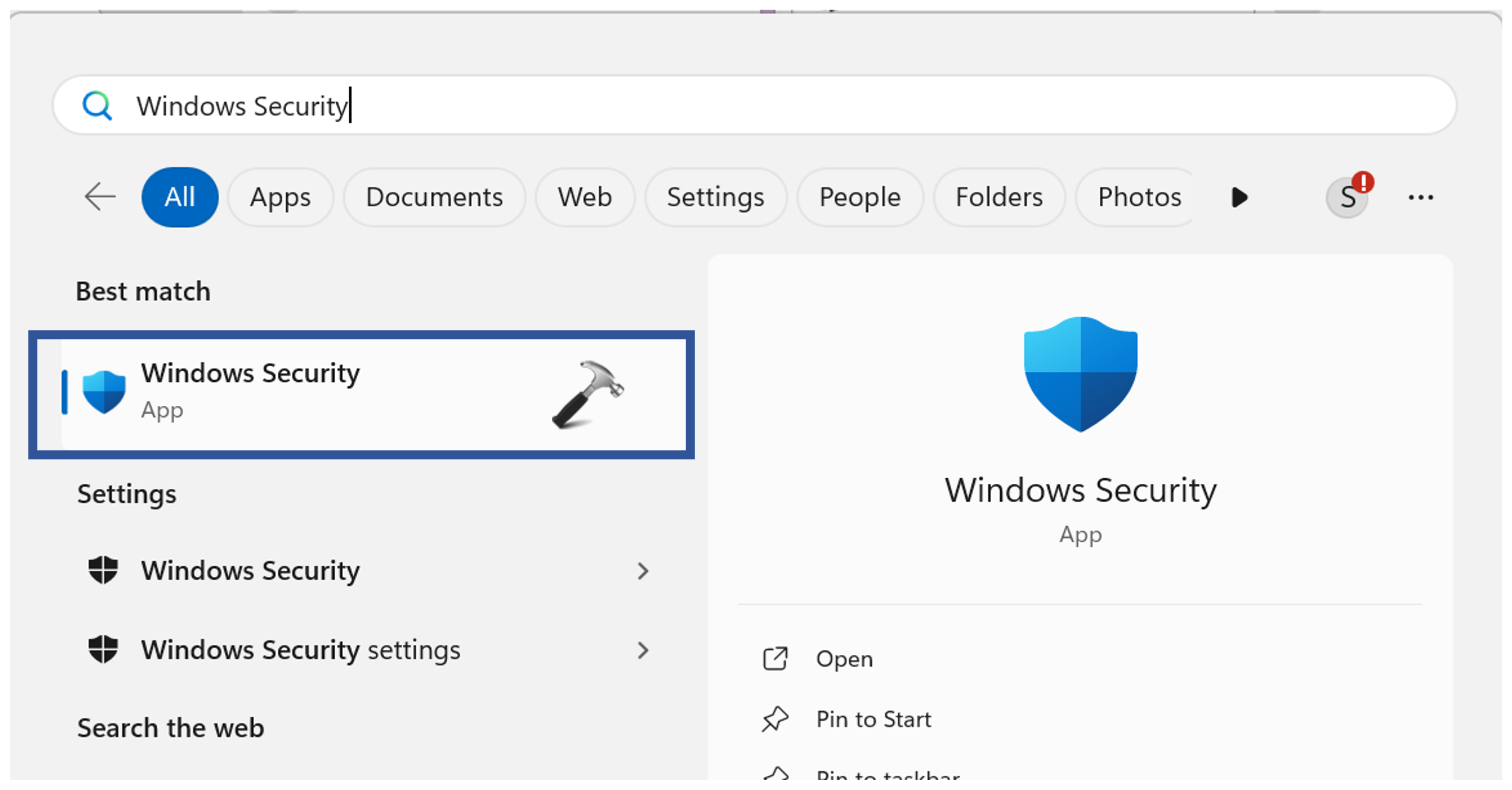 1. Ouvrez le « Sécurité Windows»Application.