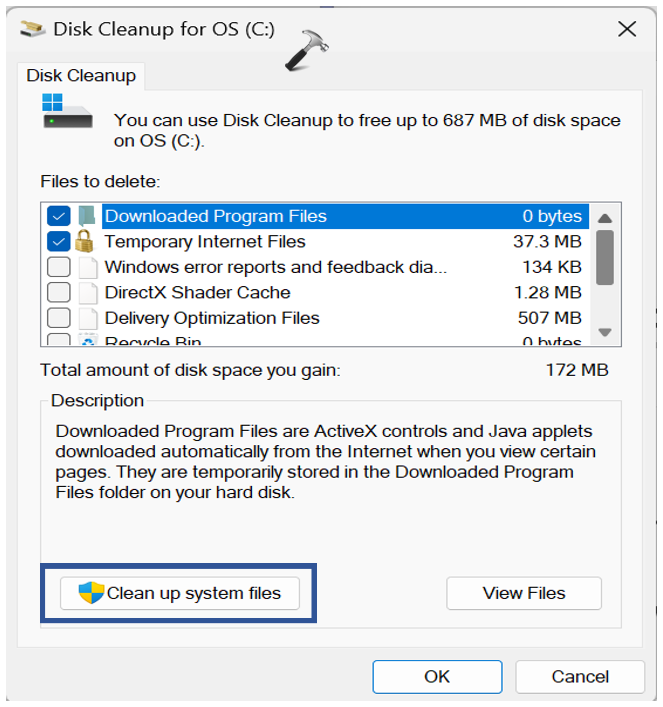 3. Maintenant, sélectionnez «Nettoyer les fichiers système". Cliquez sur OK.