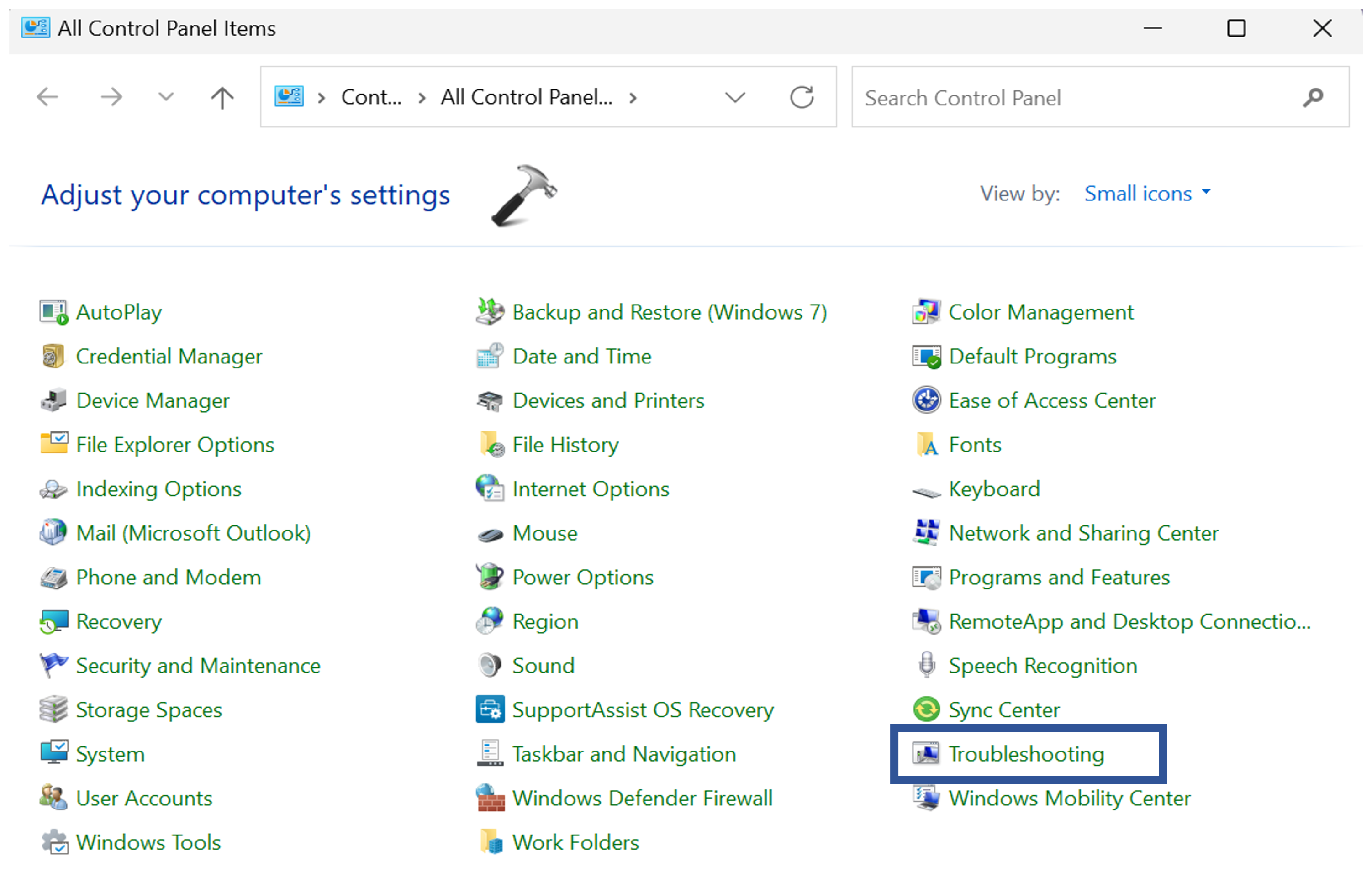1. Ouvrez le Panneau de configuration et cliquez sur «Dépannage« .