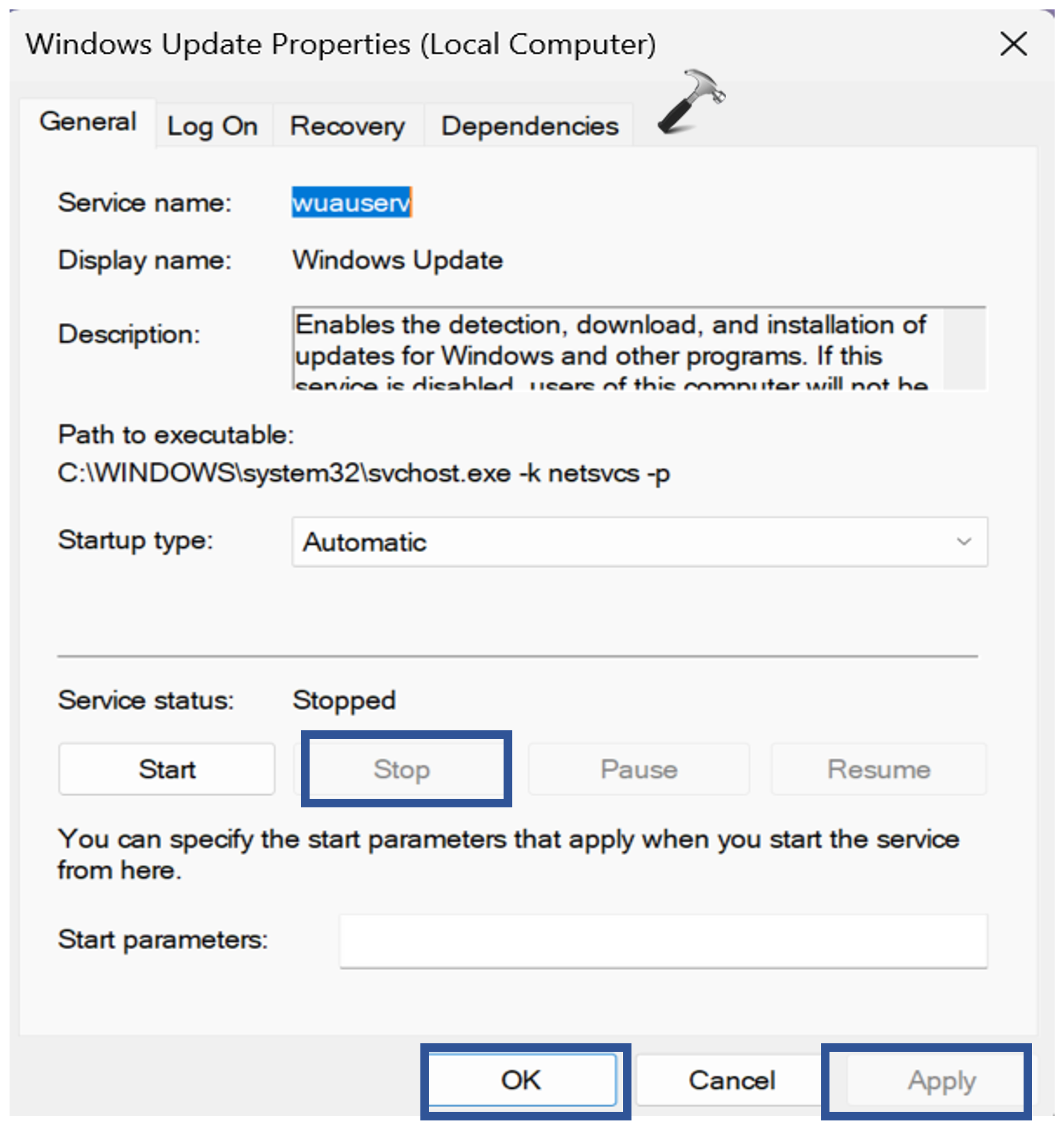 net stop wuauserv