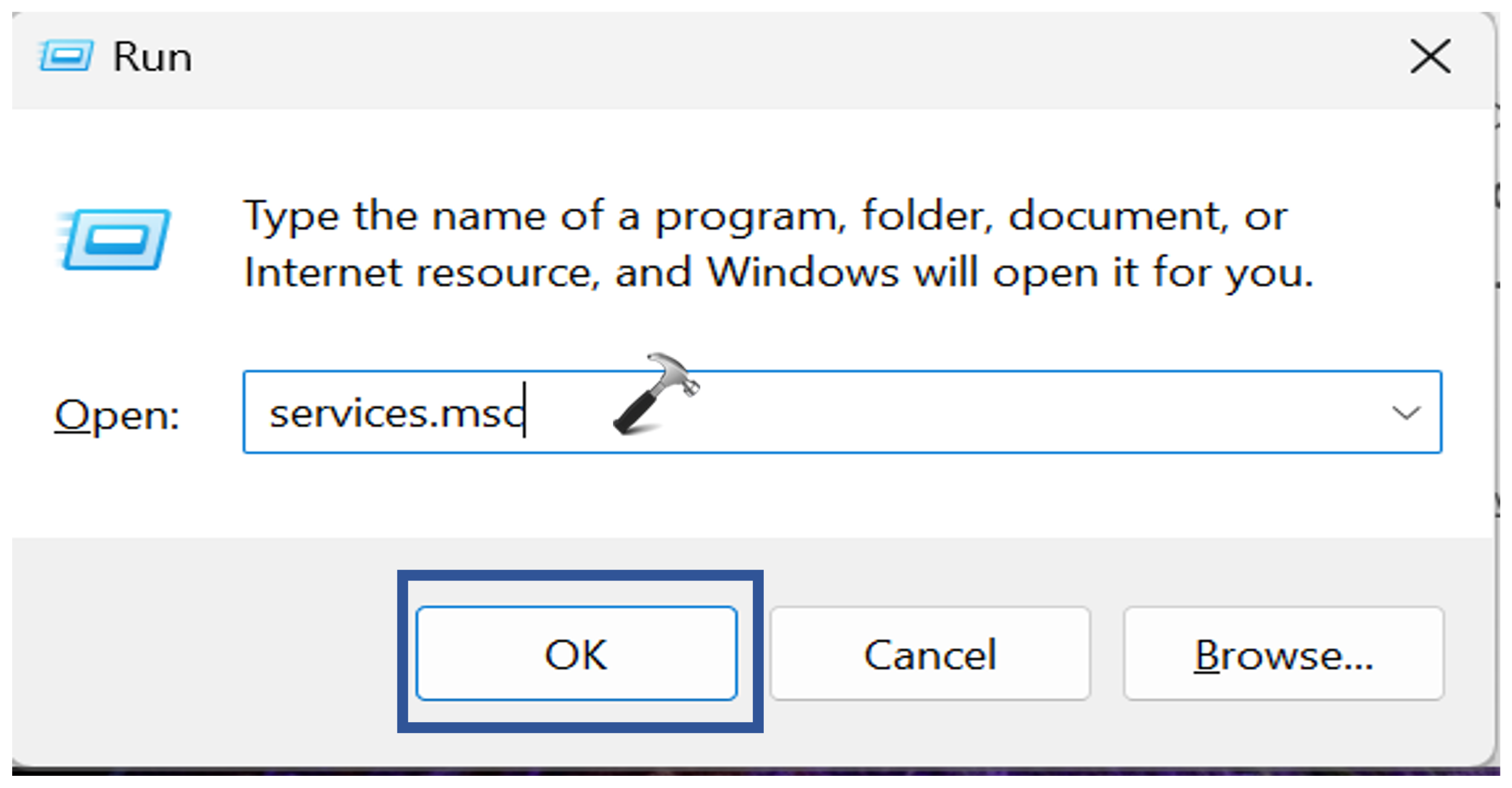 1. Appuyez sur la touche Windows + R. Tapez «services.msc« .
