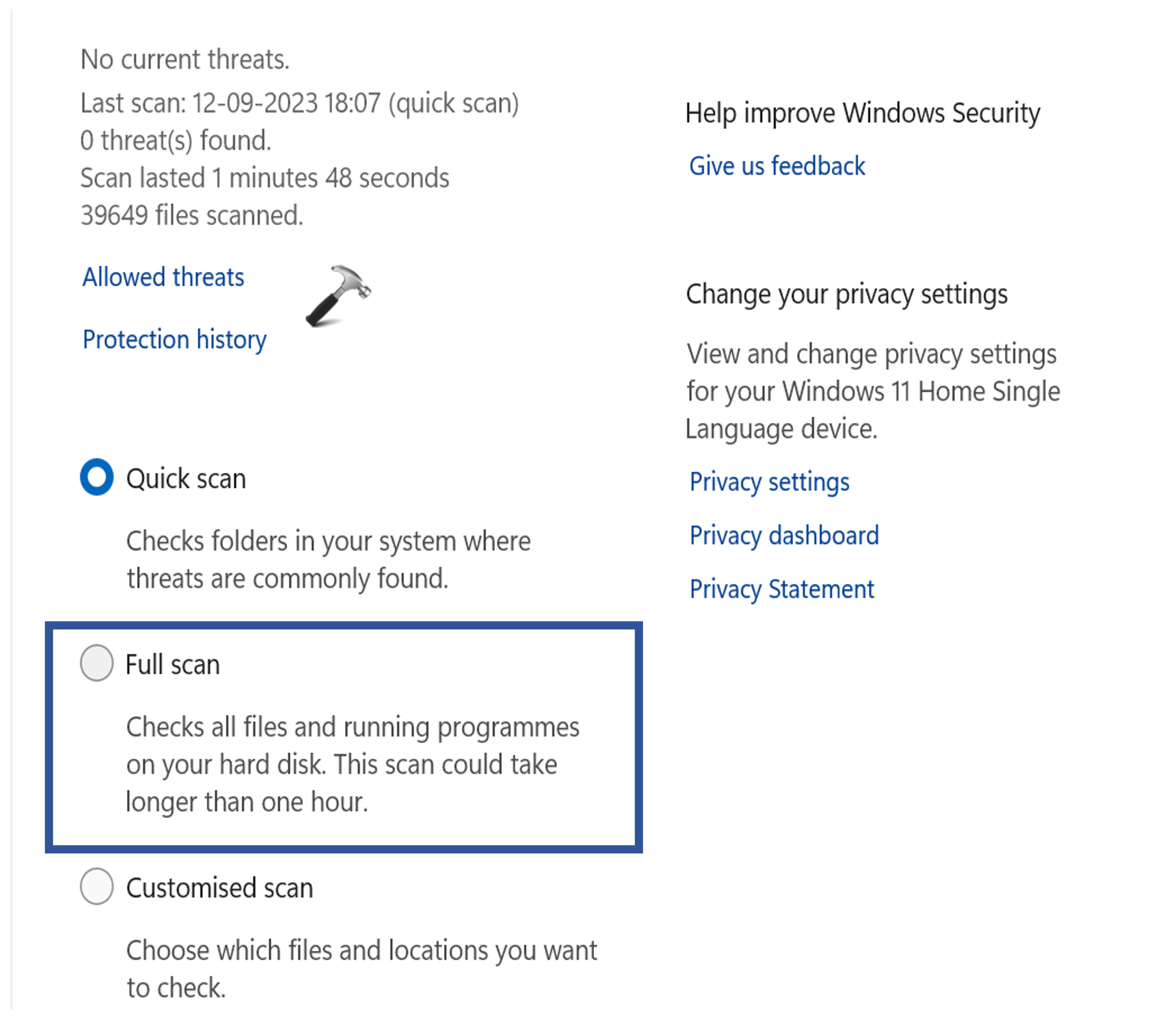 4. Ensuite, cliquez sur «Analyse complète« .