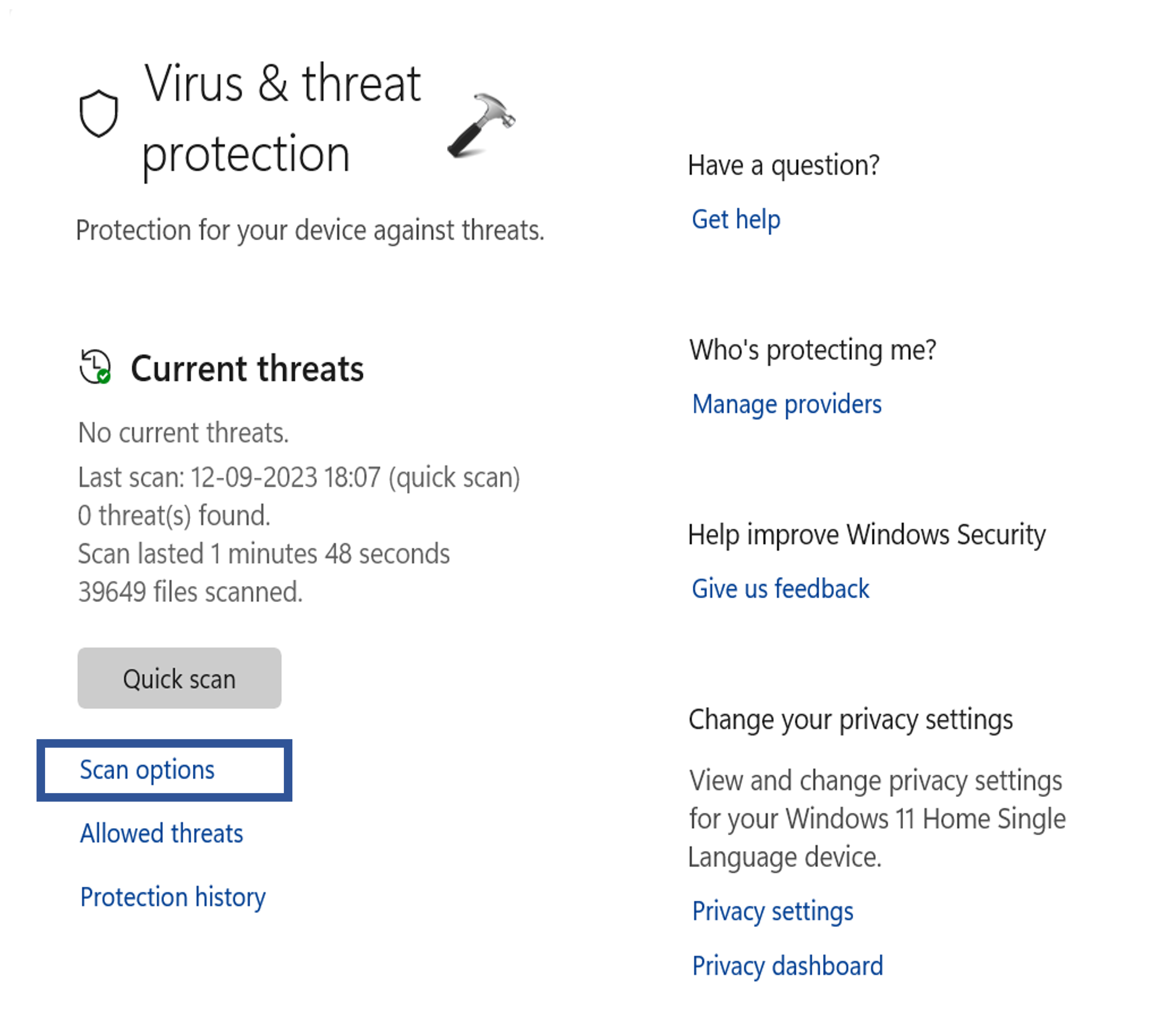 Vous pouvez utiliser le logiciel antivirus Windows Defender intégré pour analyser votre ordinateur. Pour ce faire, suivez ces étapes :