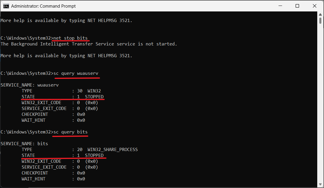 net stop bits