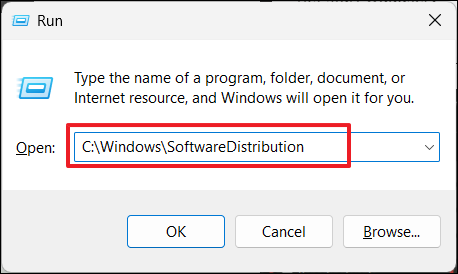 5. TapezC:WindowsSoftwareDistributionet appuyez sur Entrée.