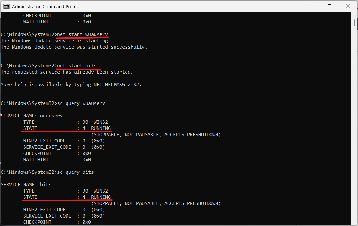 net start wuauserv