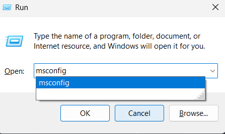 2.Ensuite, tapezmsconfigdans leChamp de recherche d'exécutionet appuyez sur leTouche Entréepour ouvrir leConfiguration du systèmelanguette.