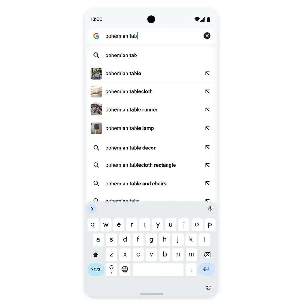 Sur Android et iOS, Chrome affichera désormais des images utiles pour des catégories d'achats et des produits plus larges, basées sur une recherche plus simple, comme « table bohème ».