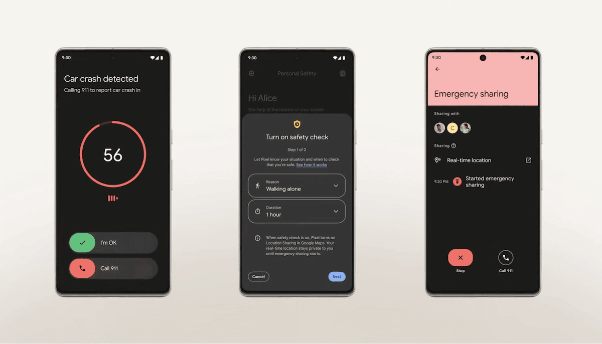Nous avons introduit la détection des accidents de voiture il y a trois ans, ainsi que d'autres moyens importants pour assurer votre sécurité, comme les contrôles de sécurité et le partage d'urgence. Il s’agit d’un incroyable palmarès de fonctionnalités pionnières qui ont été introduites pour la première fois sur Pixel et qui rendent l’expérience encore plus utile.