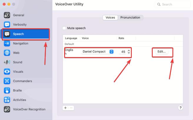 Changer la voix VoiceOver