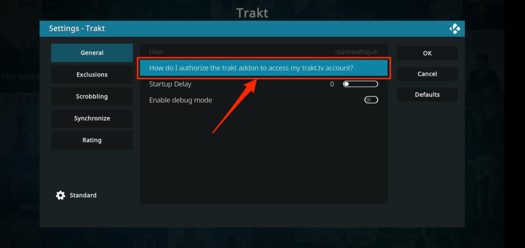 - Dans leGénéralonglet, sélectionnezComment autoriser l'addon trakt à accéder à mon compte trakt.tv ?.