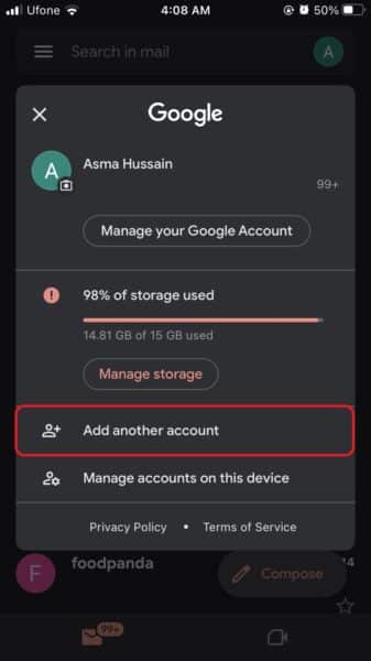 - Ensuite, sélectionnezAjouter un autre compte.