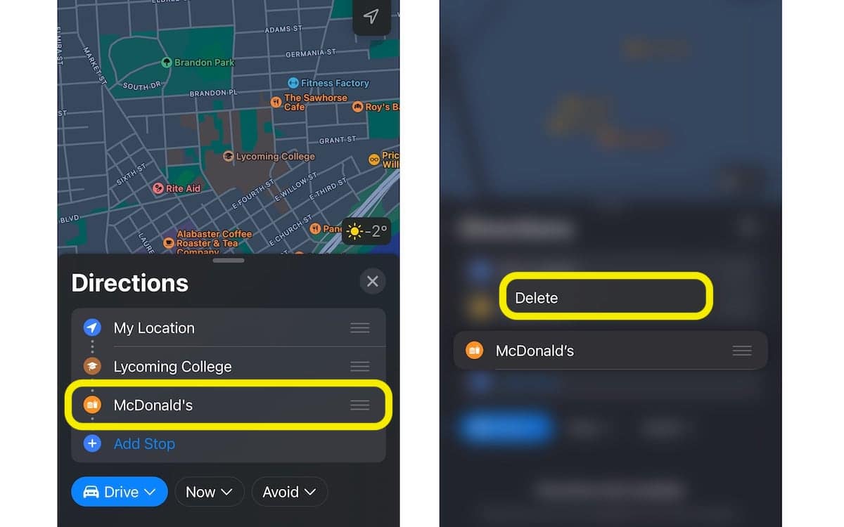 Comment mettre en pause les itinéraires et supprimer un arrêt sur un itinéraire dans Apple Maps