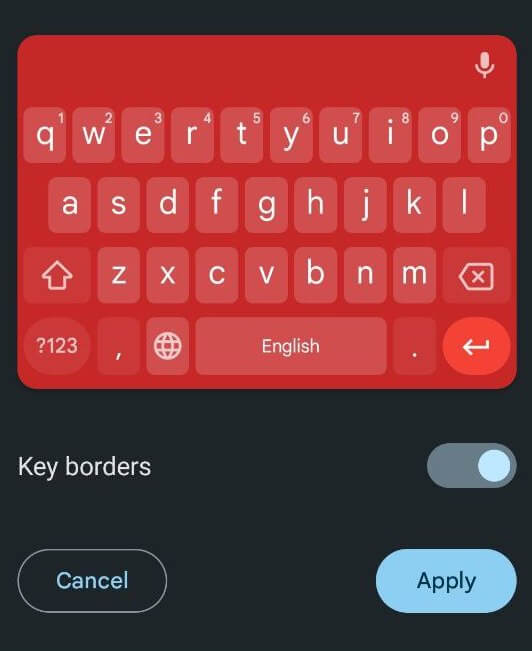 - Après avoir choisi le thème de couleur que vous aimez, vous verrez l’aperçu de votre nouvelle disposition et couleur de clavier. SélectionnerAppliquerpour enregistrer les modifications.