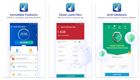 Smart Phone Cleaner est un programme complet d'optimisation Android qui permet d'effacer les fichiers indésirables, le cache et les fichiers obsolètes pour libérer un espace de stockage précieux. Il contient également un module de recherche de fichiers en double qui élimine toutes les dupes de votre téléphone. Vous pouvez également verrouiller des applications, les mettre en veille prolongée et effacer votre historique de navigation.