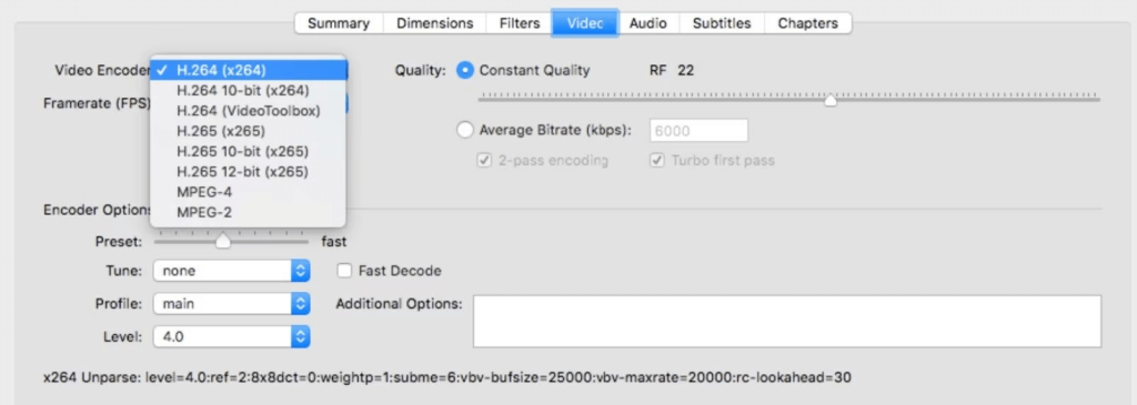 Étape 5 :Si nécessaire, vous pouvez également accéder à l'onglet « Vidéo » pour personnaliser les paramètres tels que « l'encodeur vidéo » en fonction de vos préférences.