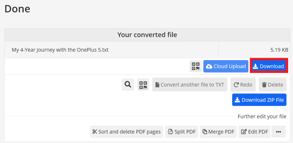 Félicitations pour la conversion réussie! Votre PDF a été transformé en toute transparence en fichier TXT.