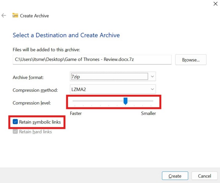 9.Vous pouvez alorsajuster le niveau de compressionetpersonnaliser le type de donnéesle fichier ou le dossier compressé serait conservé.