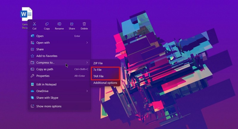 Créez des formats de fichiers 7z ou TAR de manière native sur Windows 11