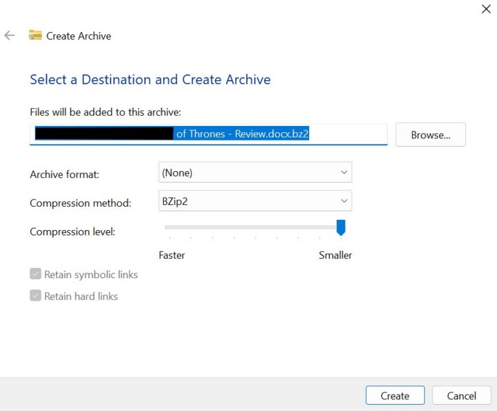10.Enfin, cliquez sur leBouton Créerpour compresser le fichier ou le dossier sélectionné.