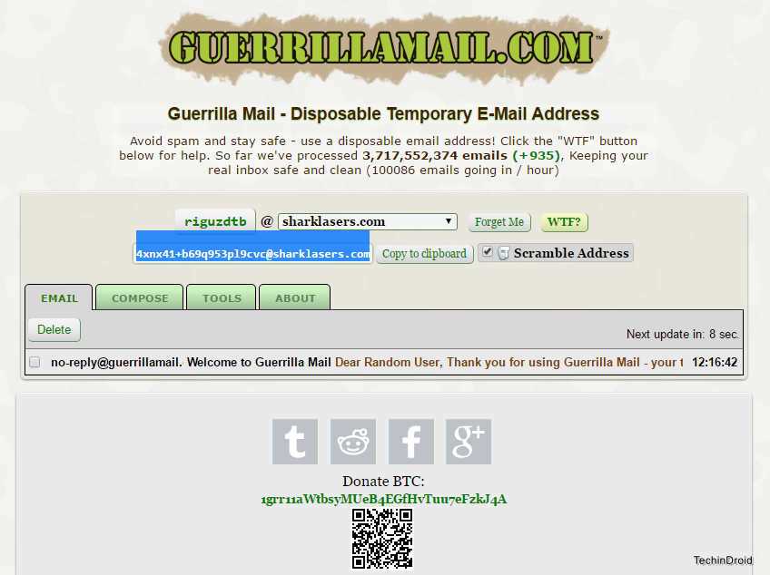 Ce qui salit généralement, mais certainement pas la meilleure utilisation (en fait, aucune ne l'est). C'est simple, il suffit de visiter le site et de cliquer sur «Recevoir un e-mail temporaire »bouton. Ça y est vous avez créé unemail temporaire.
