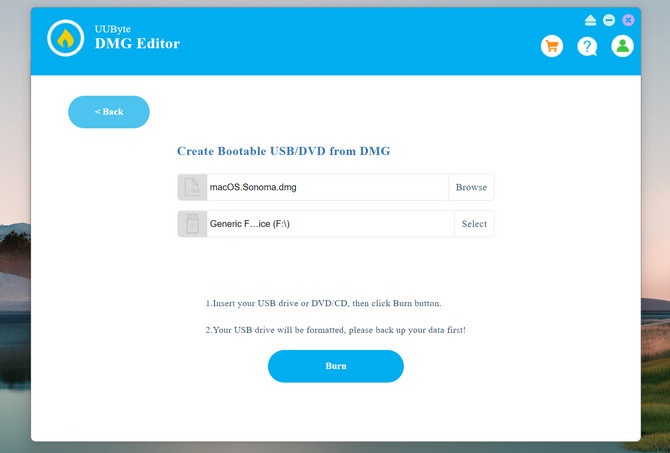 UUByte DMG Editor est un outil logiciel polyvalent conçu pour les utilisateurs Windows. Il se distingue par son interface conviviale et ses fonctionnalités puissantes, notamment la création, l'édition et l'extraction de fichiers DMG. Plus important encore, il permet aux utilisateurs de Windows de créer une clé USB amorçable à partir d'un fichier macOS DMG, ce qui est particulièrement utile pour installer macOS sur du matériel Apple ou l'exécuter sur une machine virtuelle.